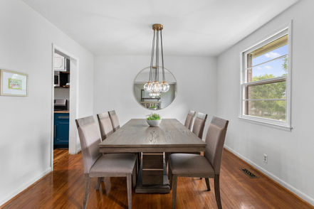 The globe chandelier adds a modern touch. Dining in this simple, yet modern space will be an entertainer's dream.